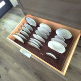 Kitchen plates organizer is designed for base kitchen cabinets with drawers.